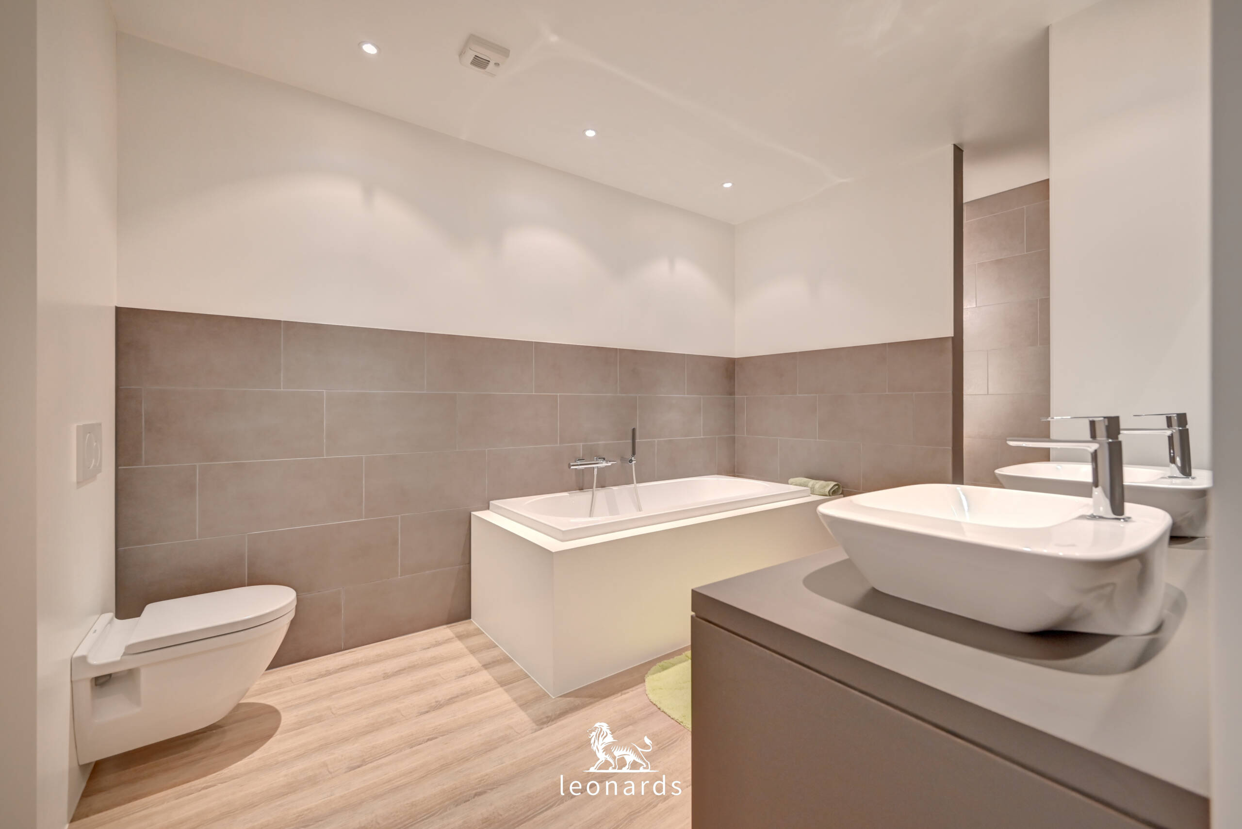 Boven wachten drie ruime slaapkamers, een stijlvolle badkamer met ligbad, inloopdouche, dubbele lavabo en toilet. Er is ook een doorloopdressing (yes!), een aparte wasplaats, extra toilet én een kelder voor al je spullen.