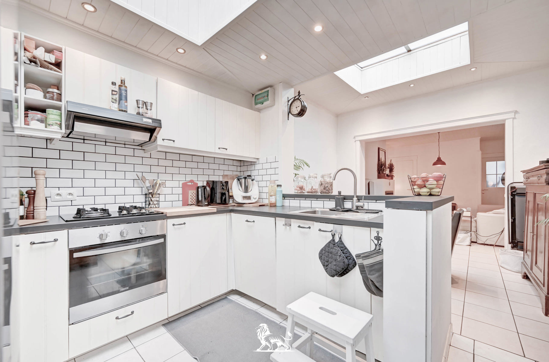 Deze rijwoning op de Brugsesteenweg is praktisch ingericht en meteen bewoonbaar. Voorin bevindt zich een extra ruimte die je kan gebruiken als bureau, hobbykamer of berging. In de leefruimte zorgt de gashaard voor een gezellig, warm accent, en de ruimte loopt open door naar de eetplaats en keuken, wat voor een aangename en open sfeer zorgt. De badkamer ligt op het gelijkvloers.